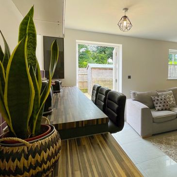The ground floor has a well equipped kitchen and comfortable lounge area. Including 2 ovens, 2 fridge freezers, dishwasher. The sitting area has a corner sofa with TV on the wall and cabling to connect games consoles.